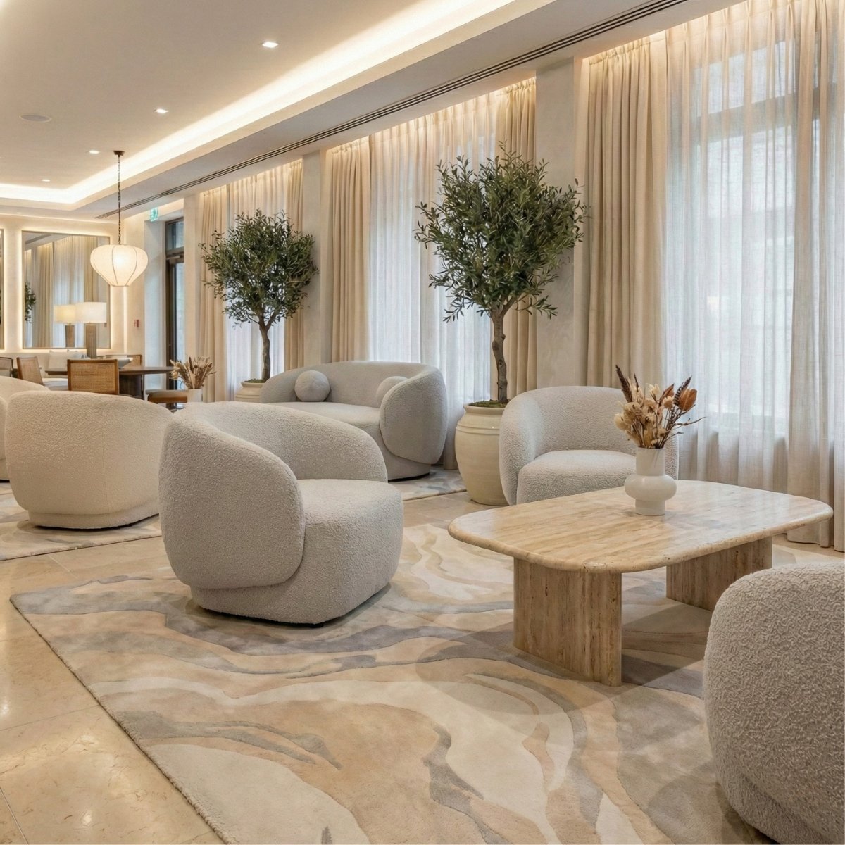 Spolupracujeme priamo s architektmi, dizajnérmi a hotelovými partnermi, aby sme zosúladili naše textílie s ich prevádzkovými aj dizajnovými potrebami. Naša podpora zahŕňa: